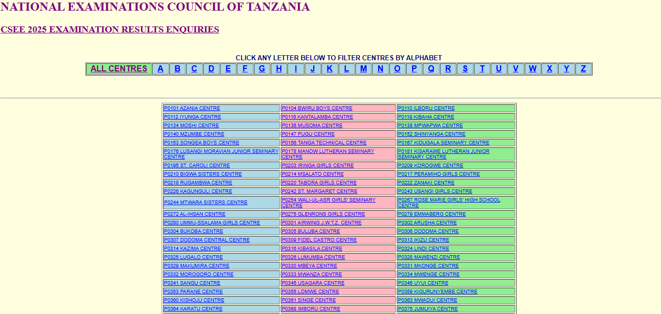 - Tembelea: https://matokeo.necta.go.tz/results/2025/csee/index.htm (au www.necta.go.tz → Results → CSEE 2025).