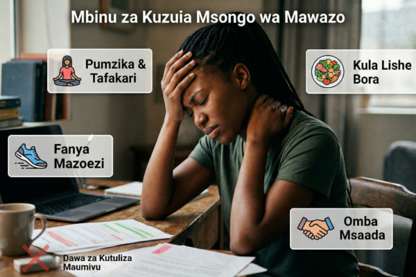 Msongo wa mawazo (stress) ni hali ambayo mwili na akili huwa chini ya shinikizo. Ikiwa inaendelea, inaweza kuleta madhara. Hapa kuna dalili 10 kuu na suluhisho rahisi za nyumbani. 1. Dalili za Kimwili Maumivu ya kichwa – Kichwa kinakaza kama bendi. Uchovu wa mara kwa mara – Unahisi umechoka hata baada ya kupumzika. Shida ya…